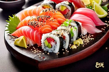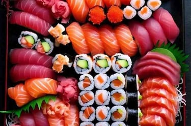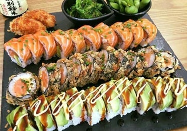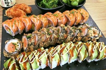 5 sashimi, 2 nigiri, 4 futomaki ou uramaki Califórnia, 8 Sushi AS, 2 gunkan.