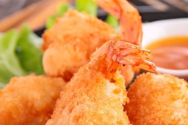 Enrolado de peixe recheado com camarão, queijo cremoso e molho especial.