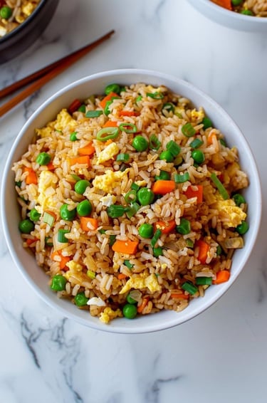Arroz frito japonês recheado de camarão, legumes diversos, ovo e frango.